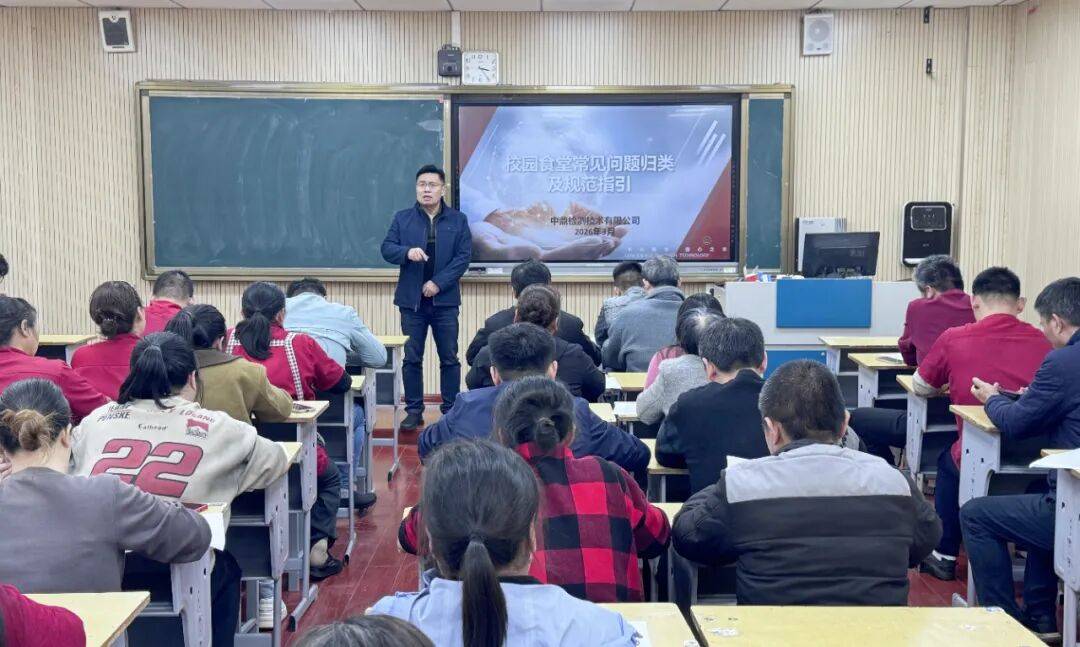 林时超副校长强调学校食物平安取操做规范的主要性,泉州鼎凯检测李鸿坤专家正在培训会上紧扣校园食物平安焦点要点,
